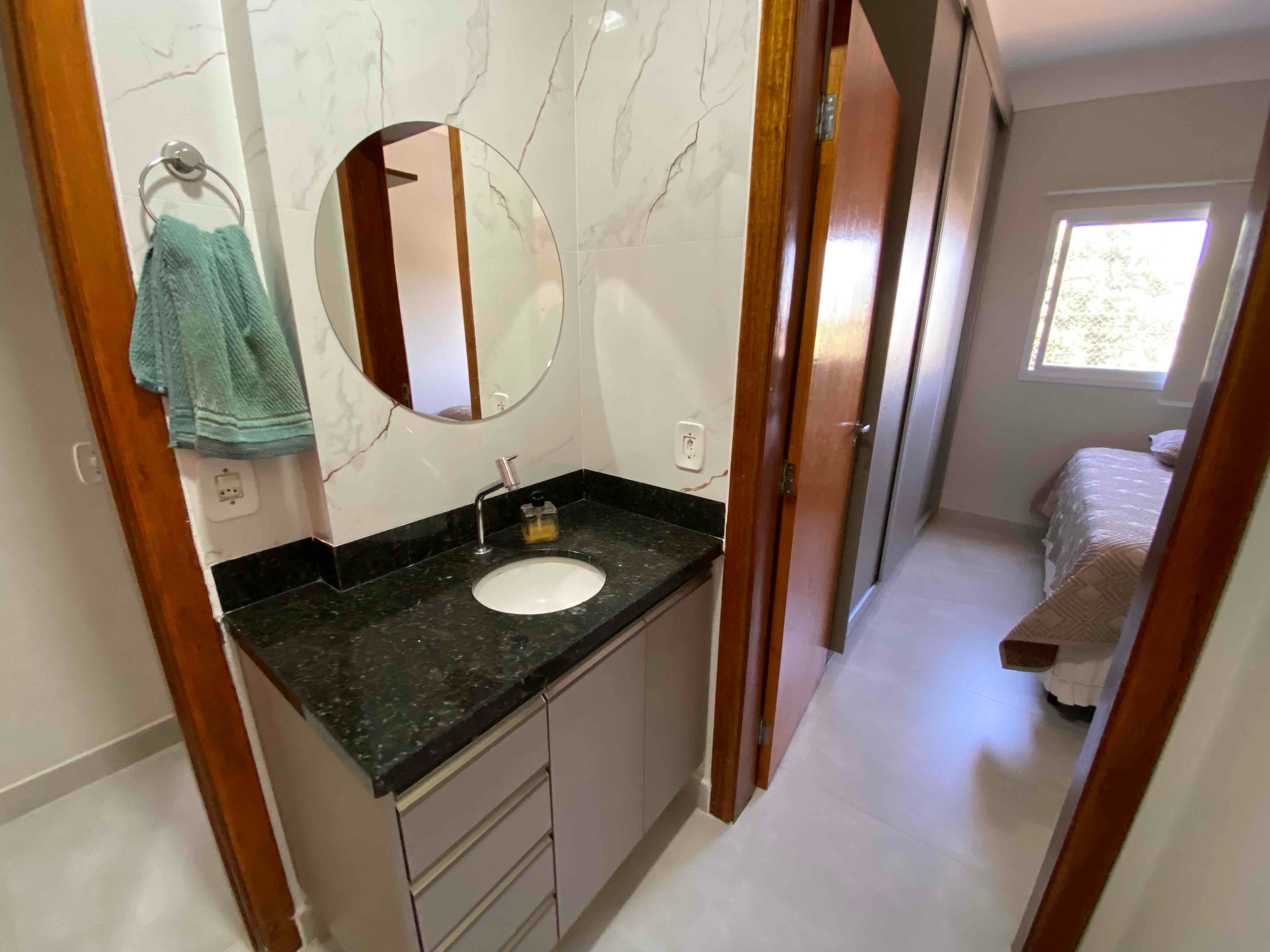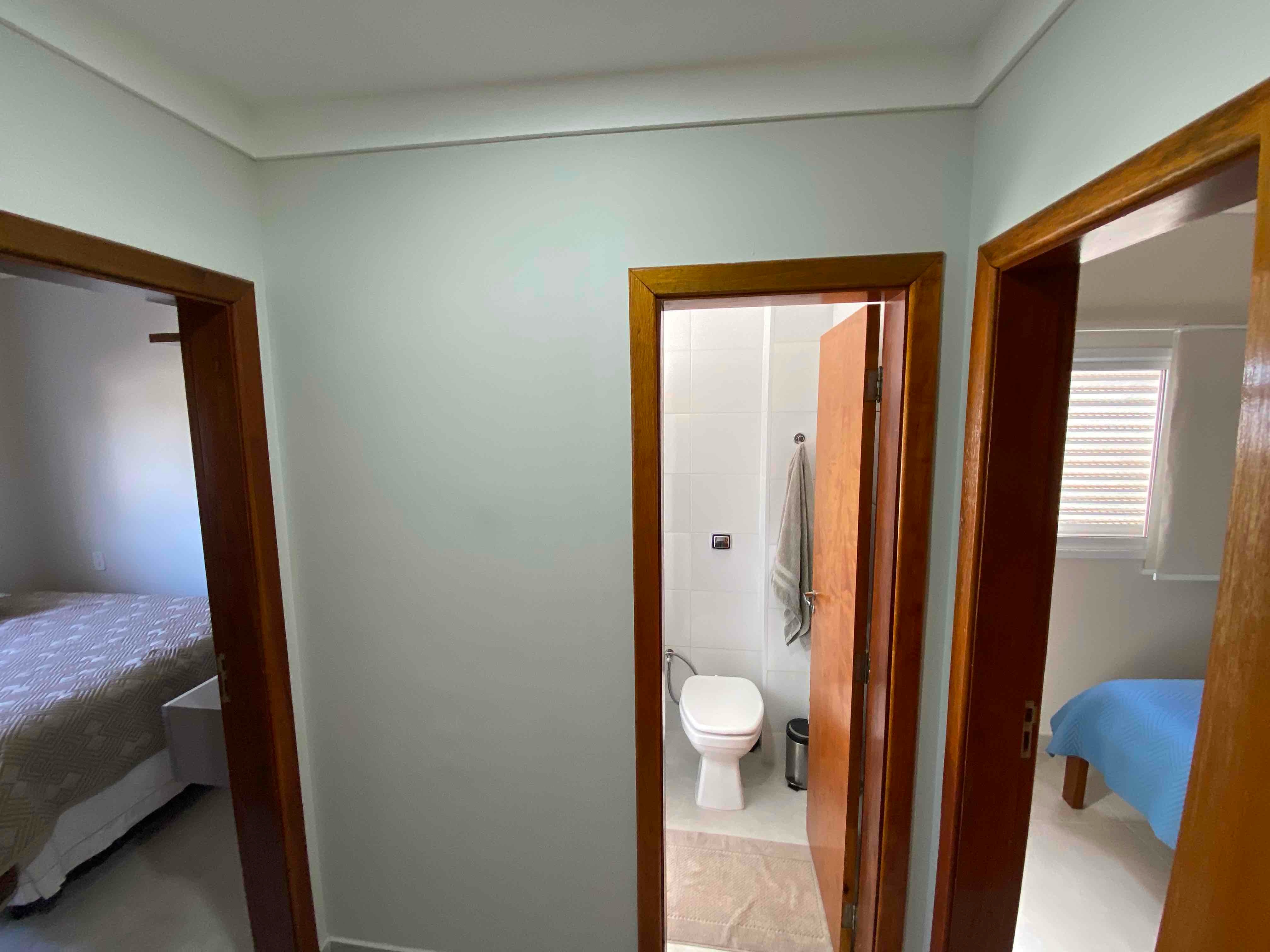 3 quartos, sendo 1 suíte e 2 quartos com banheiro americano