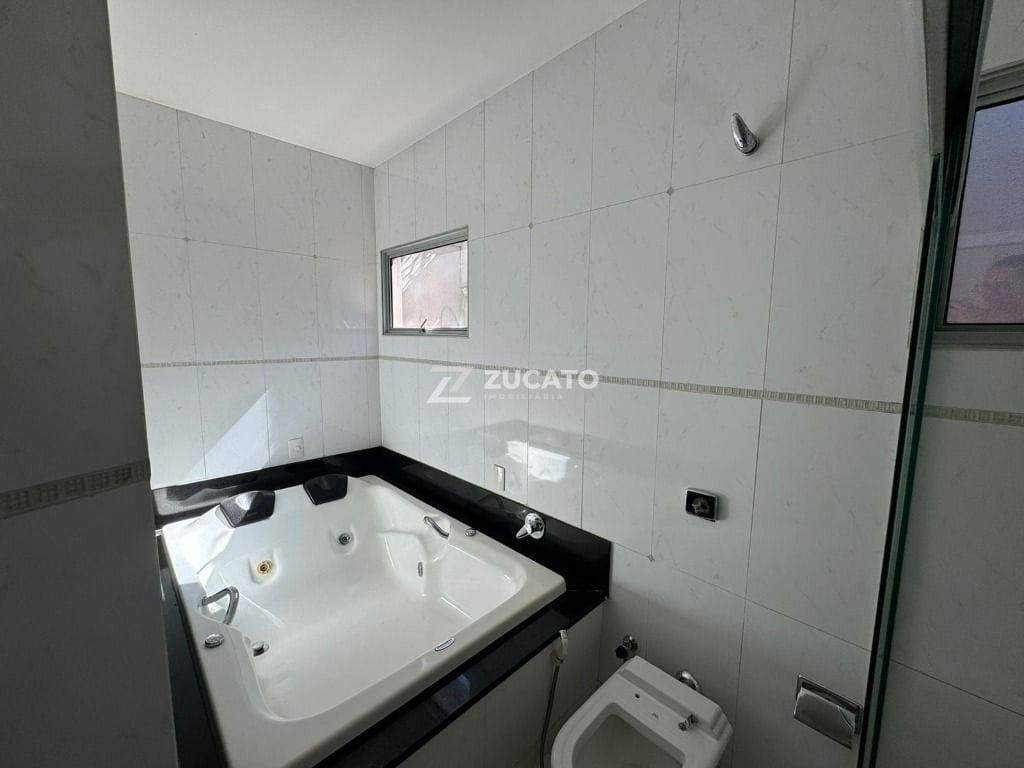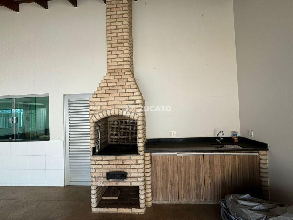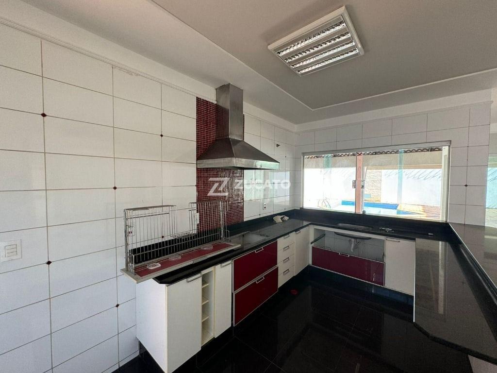 03 Suítes com armários, sendo 01 suíte master com banheira; sala de jantar com lavabo; sala de TV com banheiro social; cozinha com armários; lavanderia com banheiro; área gourmet com churrasqueira e piscina; e 03 vagas de garagem cobertas.