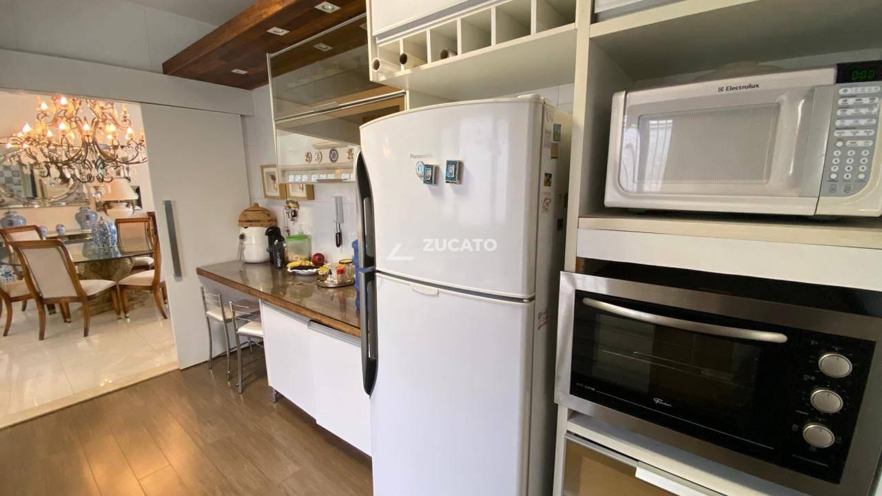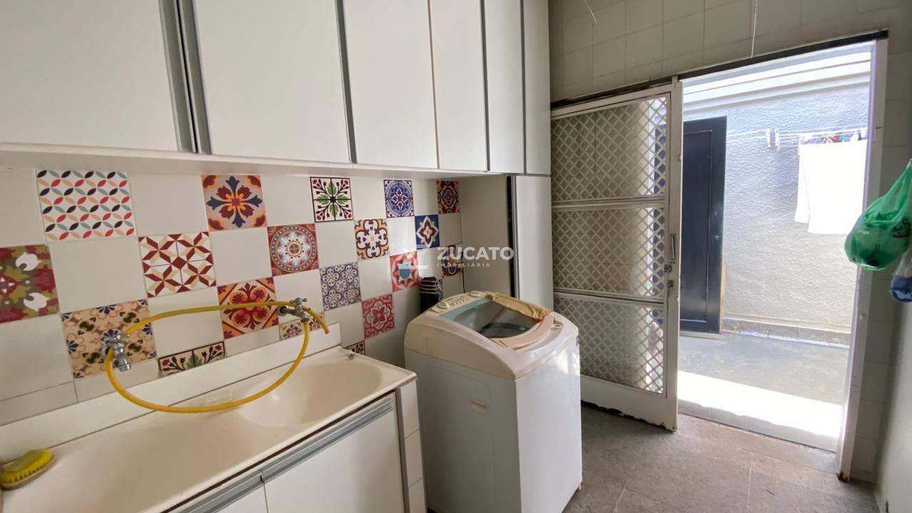 A cozinha ampla, equipada com armários planejados e cristaleira, reforça o estilo tradicional com funcionalidade moderna. A área de serviço é independente, garantindo praticidade e organização, além de contar com lavabo de apoio.